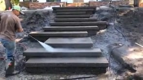 We were tasked to create an updated modern entry for this Kenilworth Channel classic home originally constructed in 1927. Working with Steele from Landscape Love and the great ideas of Billy the homeowner, we landed on this beautiful fusion between classic textures and modern lines. The finish is exposed aggregate concrete. The benefit of this finish is that is allows the natural color in the stone to blend into the landscape of the parks and lakes that surround this home. The style is as modern as they come, cantilever steps with each riser moving in and out of the center line. This creates a natural look as each step seems to sit in the hillside independently from the others but working together as functional art.